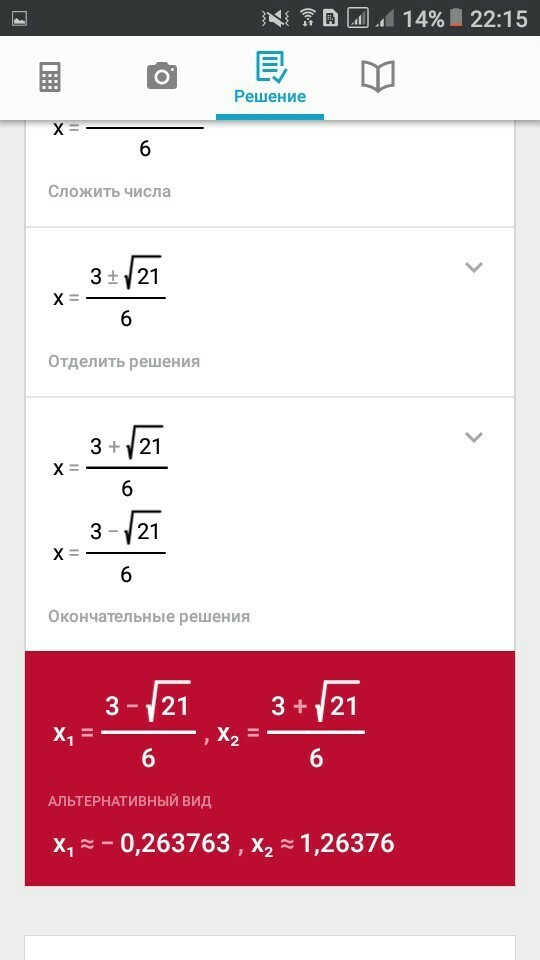 x2=(3+√21)/6