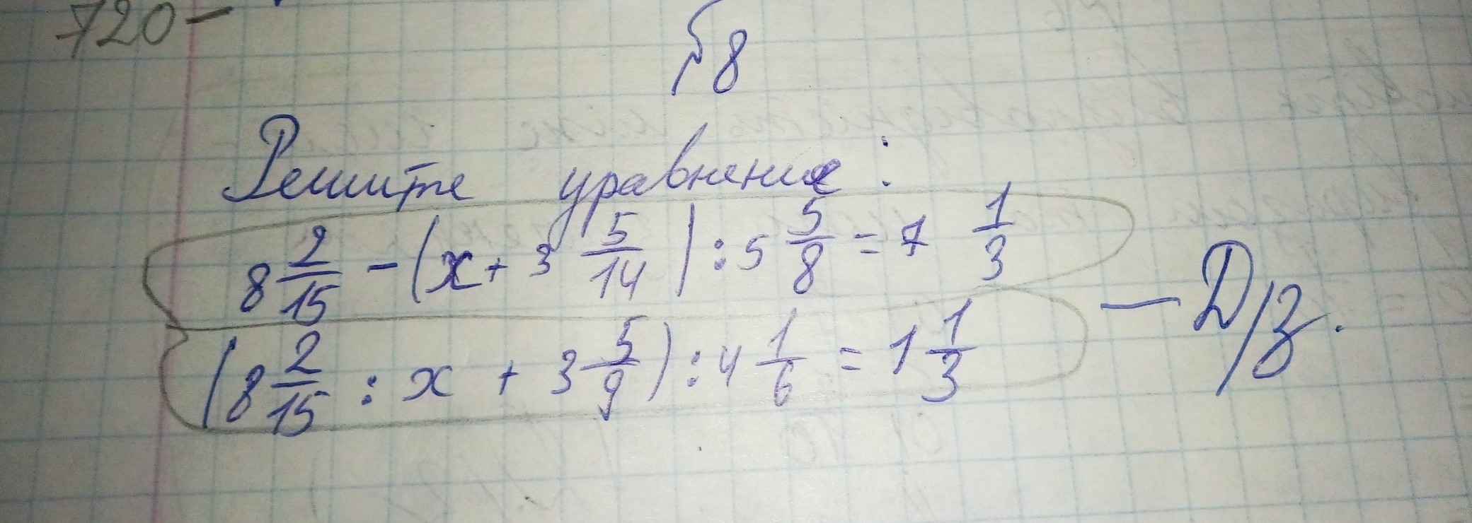 8 2/15 : х+3 5/9=50/9=5 5/9