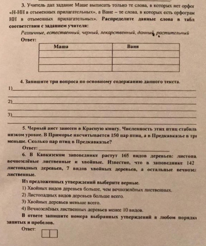 3) Маша: различные, черный, растительный
