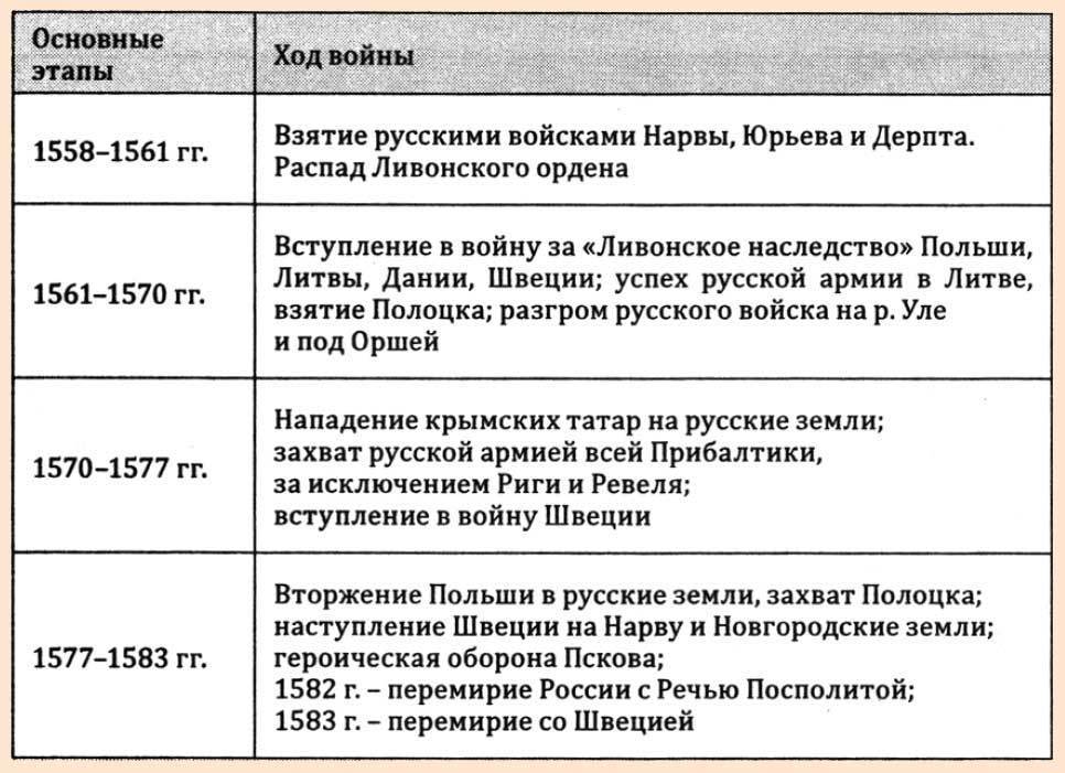 Основные итоги ливонской войны: 1) Поражение России в Ливонской войне 2) 1582 г. - Ям-Запольское перемирие с Польшей на 10 лет: Россия уступила всю Ливонию и Полоцк 3) 1583 г. - Плюсское перемирие со Швецией на 10 лет: Россия потеряла города Ям, Копорье, Ивангород, Нарву