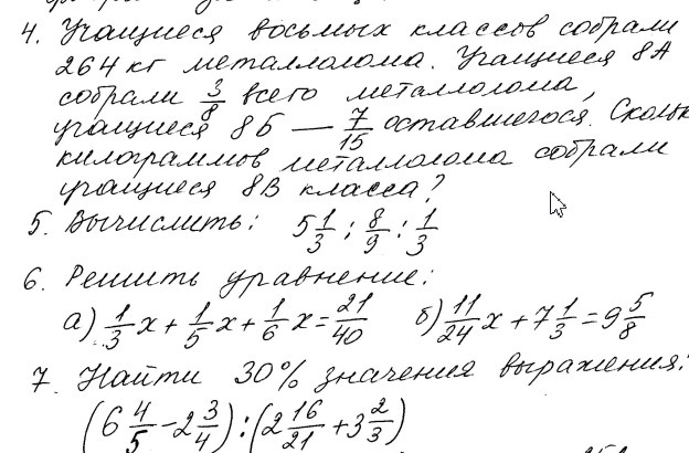 6) а) умножим на 120 40x+24x+20x=63. 84x=63 x=63/84 x=3/4 б) 11/24x+ 7/3=45/8 умножим на 24 11x+56= 135. 11x=135-56. 11x=79 x=79/11. x= 7 целых 2/11 5)16/3:8/9:1/3=16/3*9/8*3=16*8/9=2*9=18