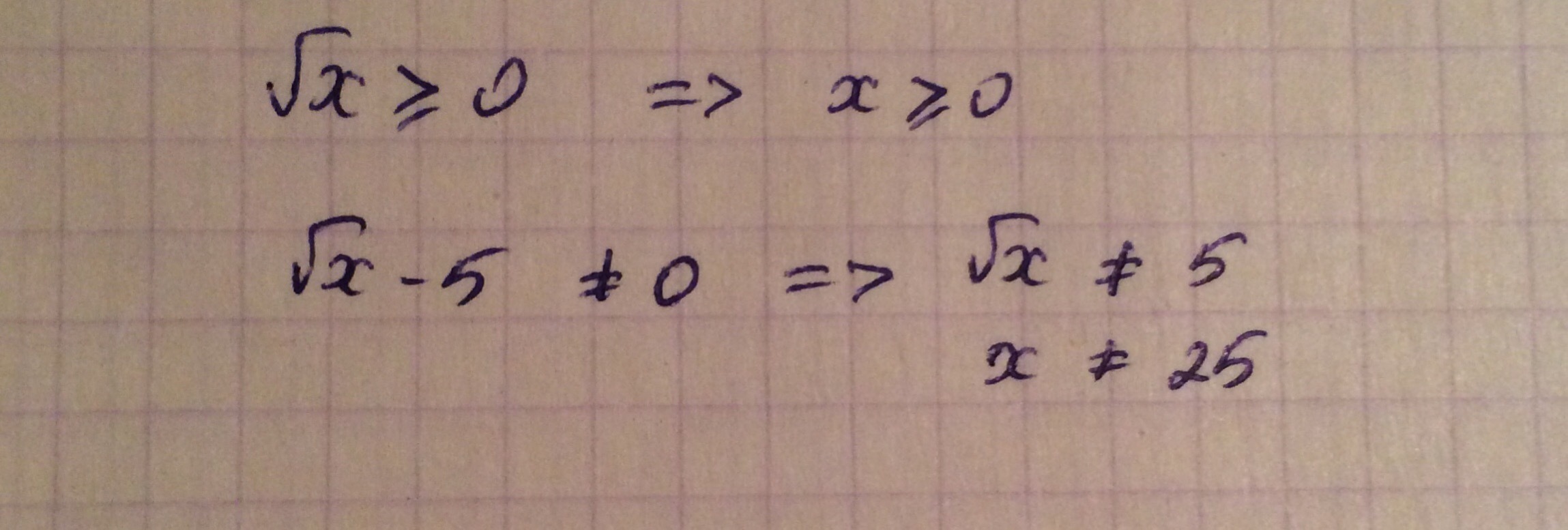 2) знаменатель не должен быть равен 0, т.е. х не равен 25.