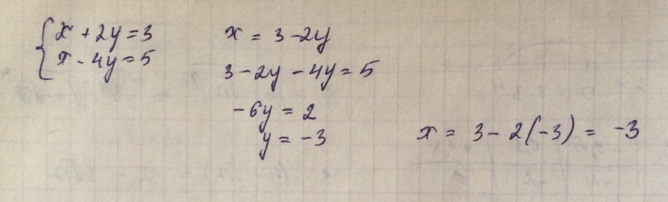 найдите координаты точки пересечения прямых х+2у=3 и х-4у=5 графически!