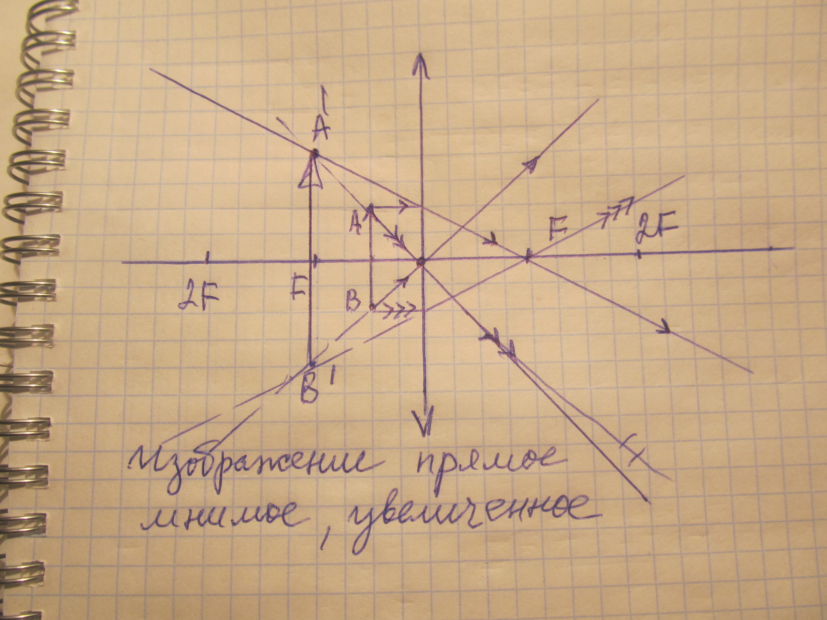 ИЛИ: т.к. линза собирающая и изображение в т. 2F, то и предмет в т. 2F.