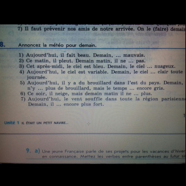 Французский упражнение 8 (я прикрепила фотку) сделайте пожалуйста