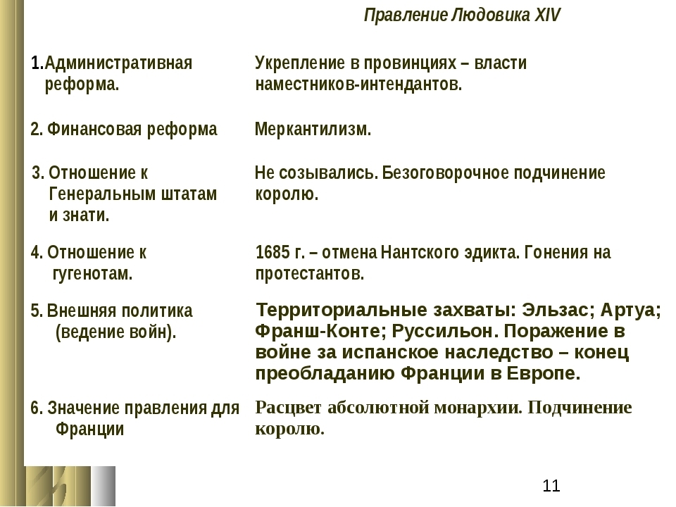 Как стремление к укреплению Франции и власти короля проявлялось во внутренней и внешней политике Людовика 14.Составьте таблицу.