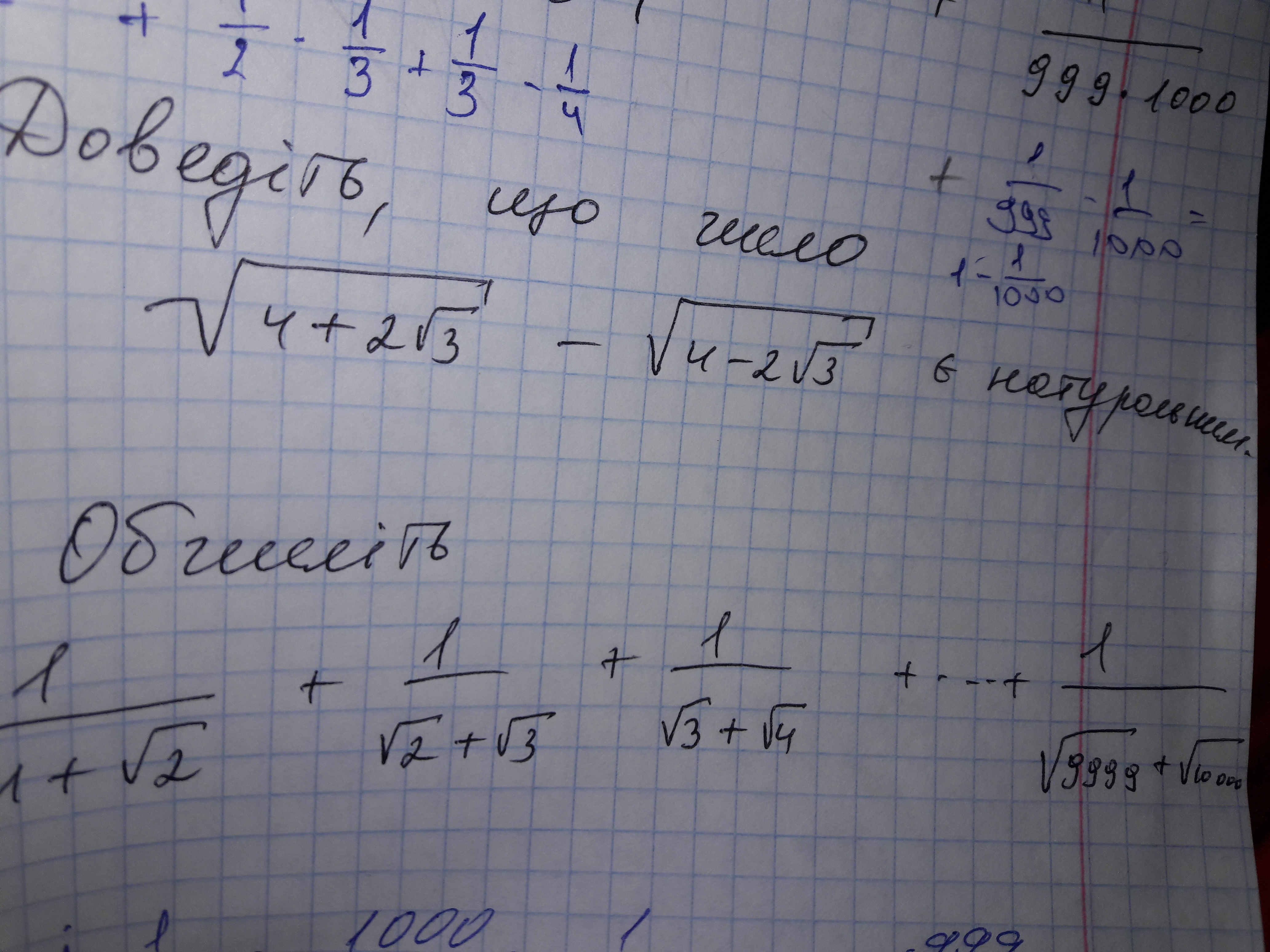 sqrt(4+2sqrt(3)) - sqrt(4+2sqrt(3)) = sqrt((sqrt(3)+1)^2) - sqrt((sqrt(3)-)^2) = abs(sqrt(3)+1) - abs (sqrt(3)-1) = sqrt(3)+1 - (sqrt(3)-1) = 2