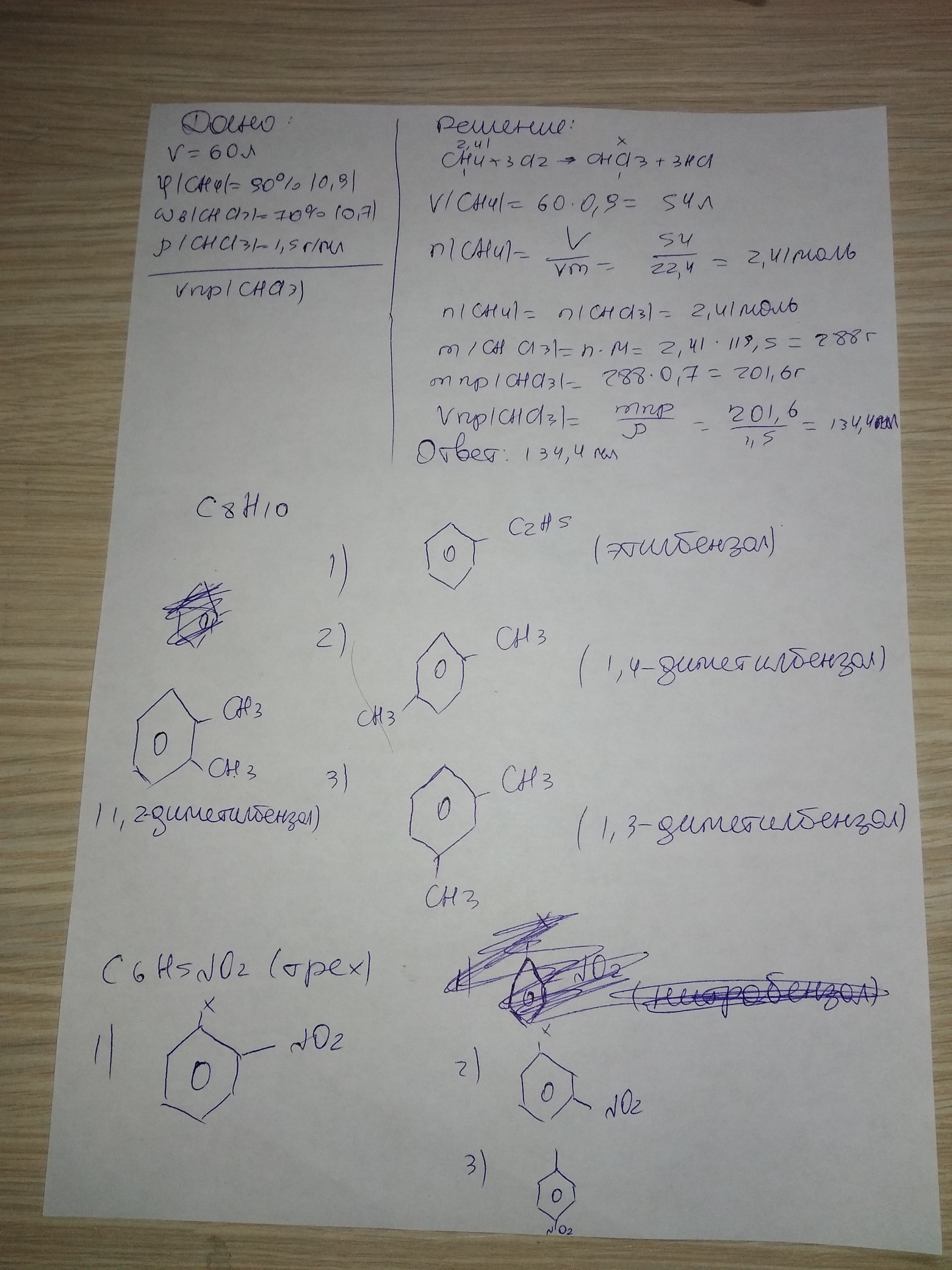 Какой объем хлороформа плотностью 1,5 г/мл можно получить из природного газа объемом 60 л (нормальные условия), объемная доля метана в котором составляет 90%. Выход хлороформа равен 70% от теоретически возможного.