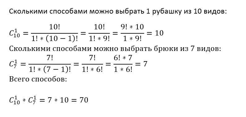 Сколькими способами можно купить рубашку и брюки, если в магазине есть 10 видов рубашек и 7 видов брюк