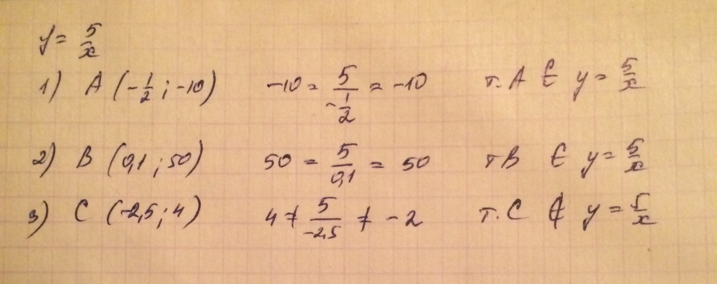 Подставляем координаты точек в уравнение функции, если равенство верно - значит точка принадлежит графику и наоборот.