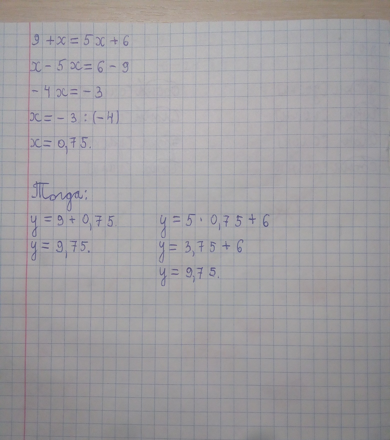 В обоих уравнениях x имеет одинаковое значение, значит, нужно сравнить части без y. Получаем: