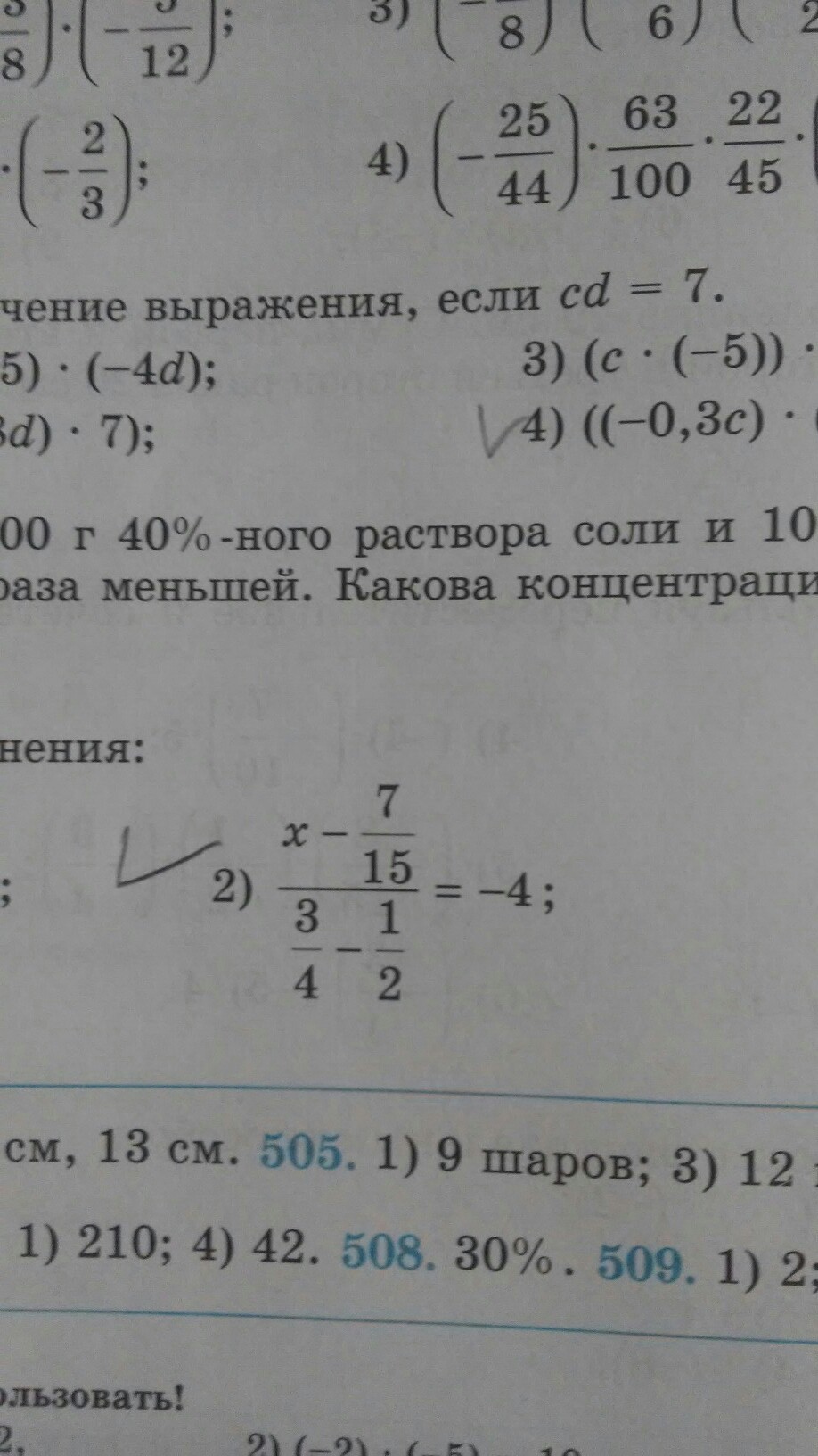 ((х-7/15)/(3/4-1/2))=-4