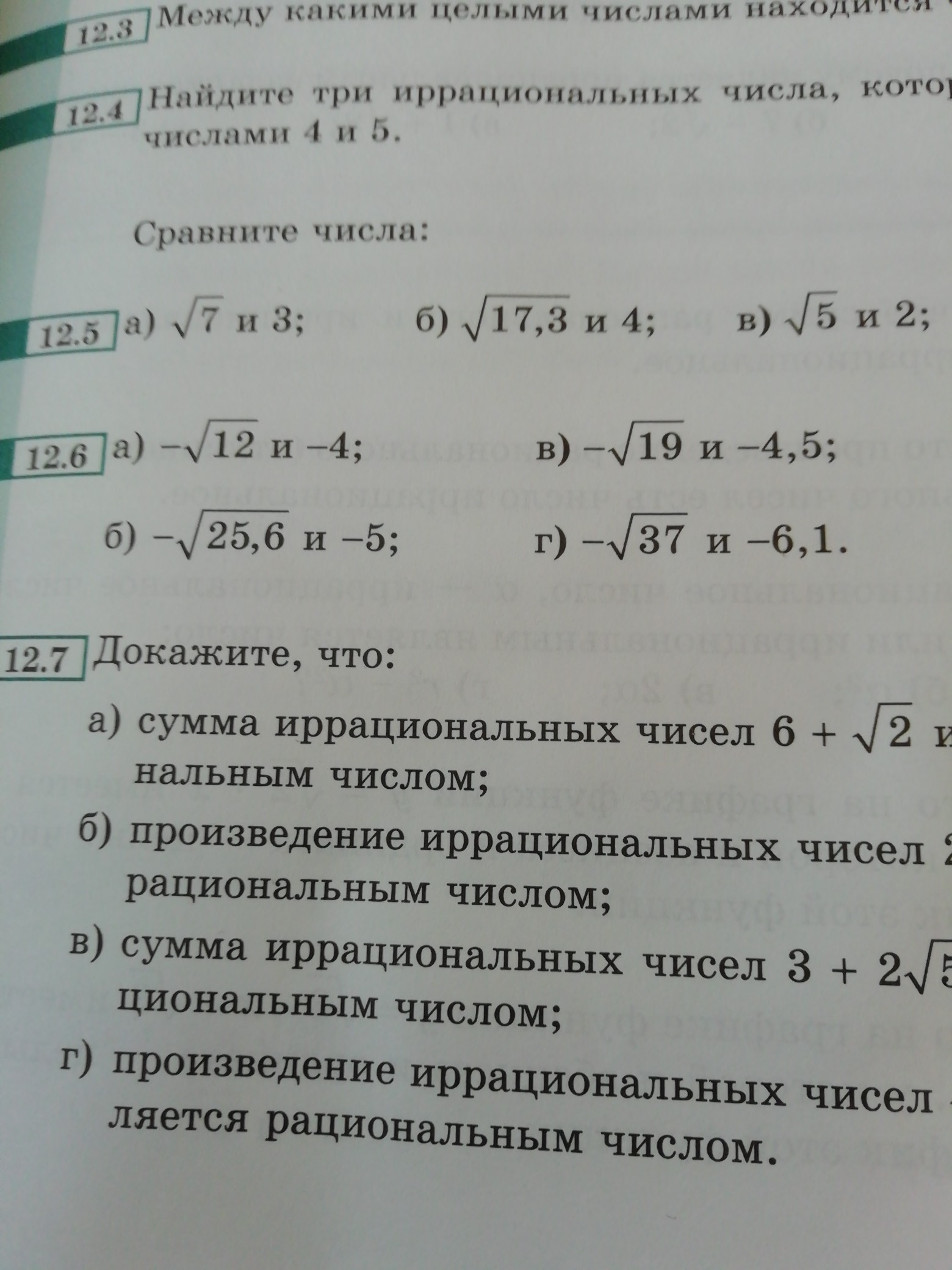 а)-√12 > -4 б)-√25,6 < -5 в)-√19 > -4.5 г)-√37 > -6.1