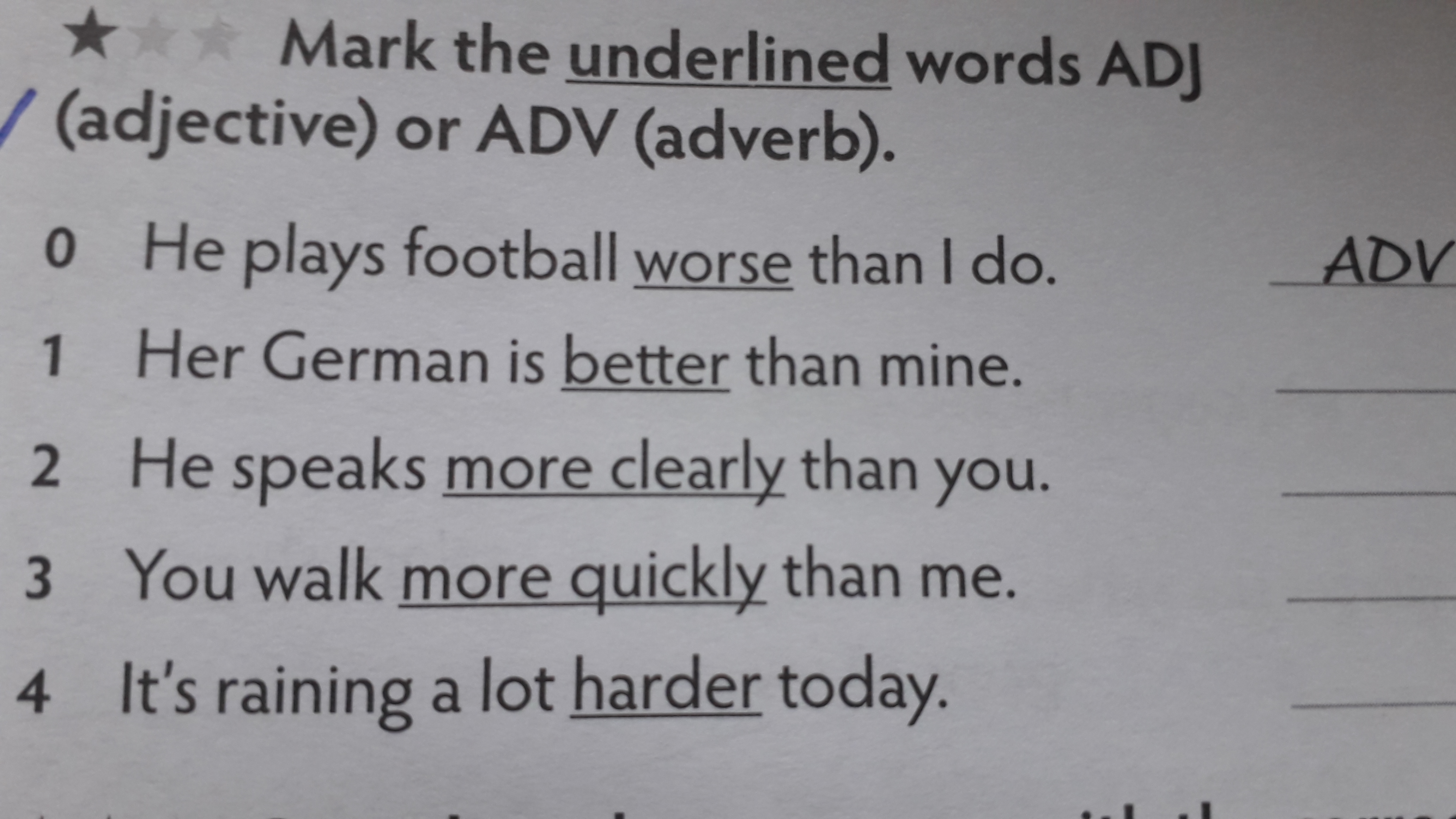 1. ADV 2. ADV 3. ADJ 4. ADV