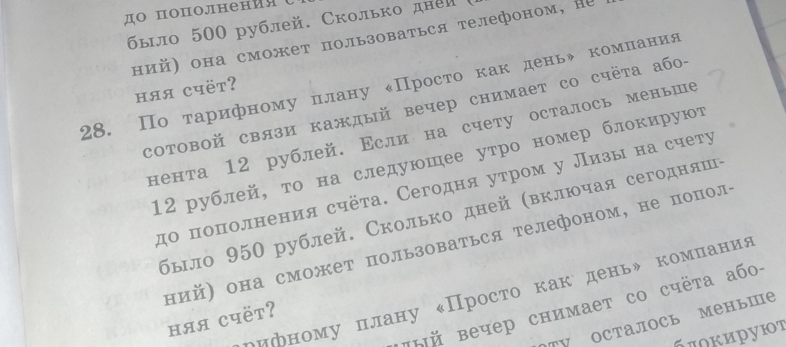 28. Т.к. 950/12=79(2), то полных 79 дней мы можем пользоваться тарифов, на 80 нас отключат, т.к. на счету всего 2 р.