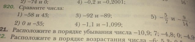 1)-58 меньше 43