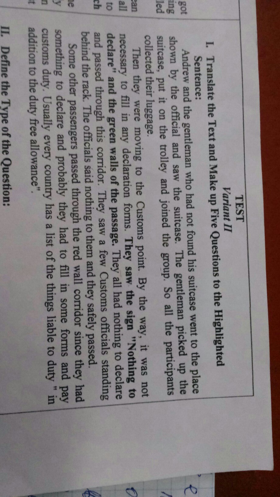 4. They saw the sign "Nothing to declare" and the green walls of the passage, didn't they?