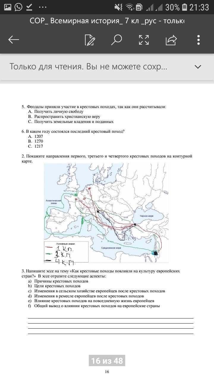 2) Покажите на карте 1,3 и 4 крестовые походы: