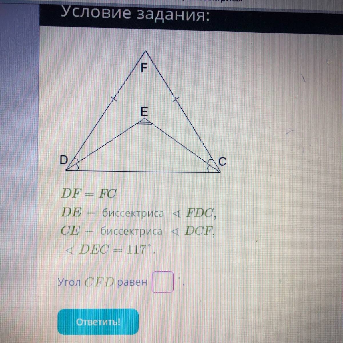 3). ∠ECD = ∠CDE = 63 / 2 = 31,5°.