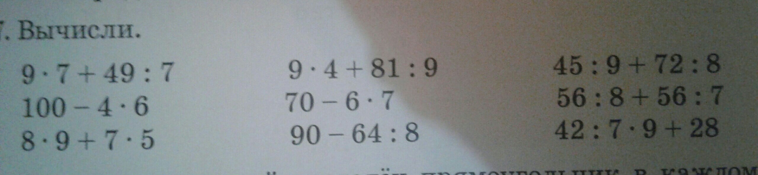 9•7+49:7=70. 9•4+81:9=46. 45:9+72:8=14