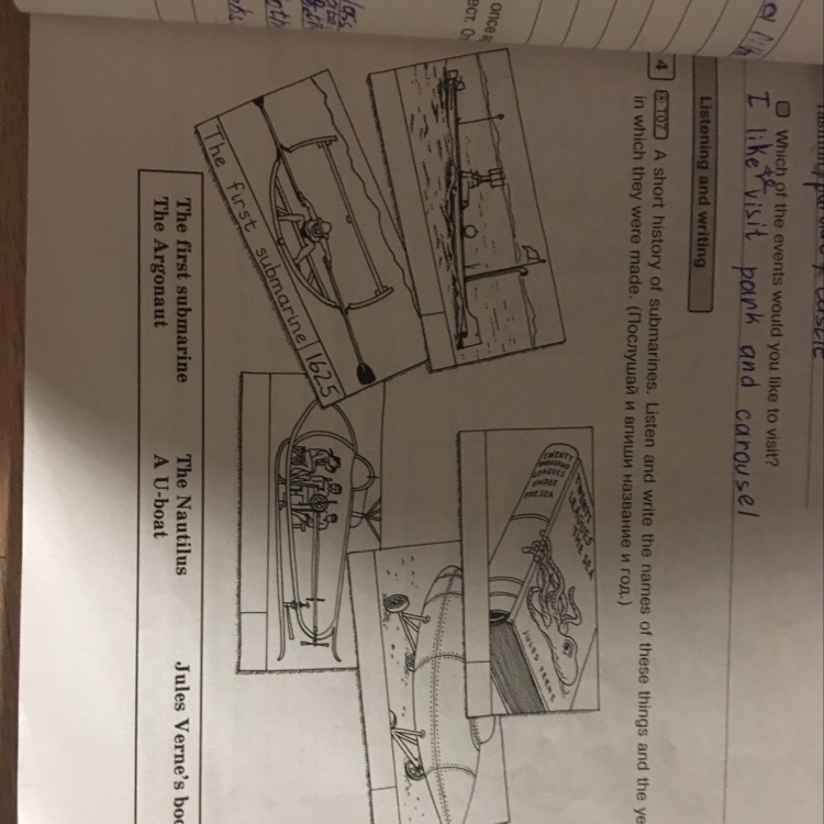 A shot history of submarines . Listen and write the names of these things and the year in which they were made .(Послушай и впиши название и год ) даю 100 балов кто быстрее даётся 30 минут !!!