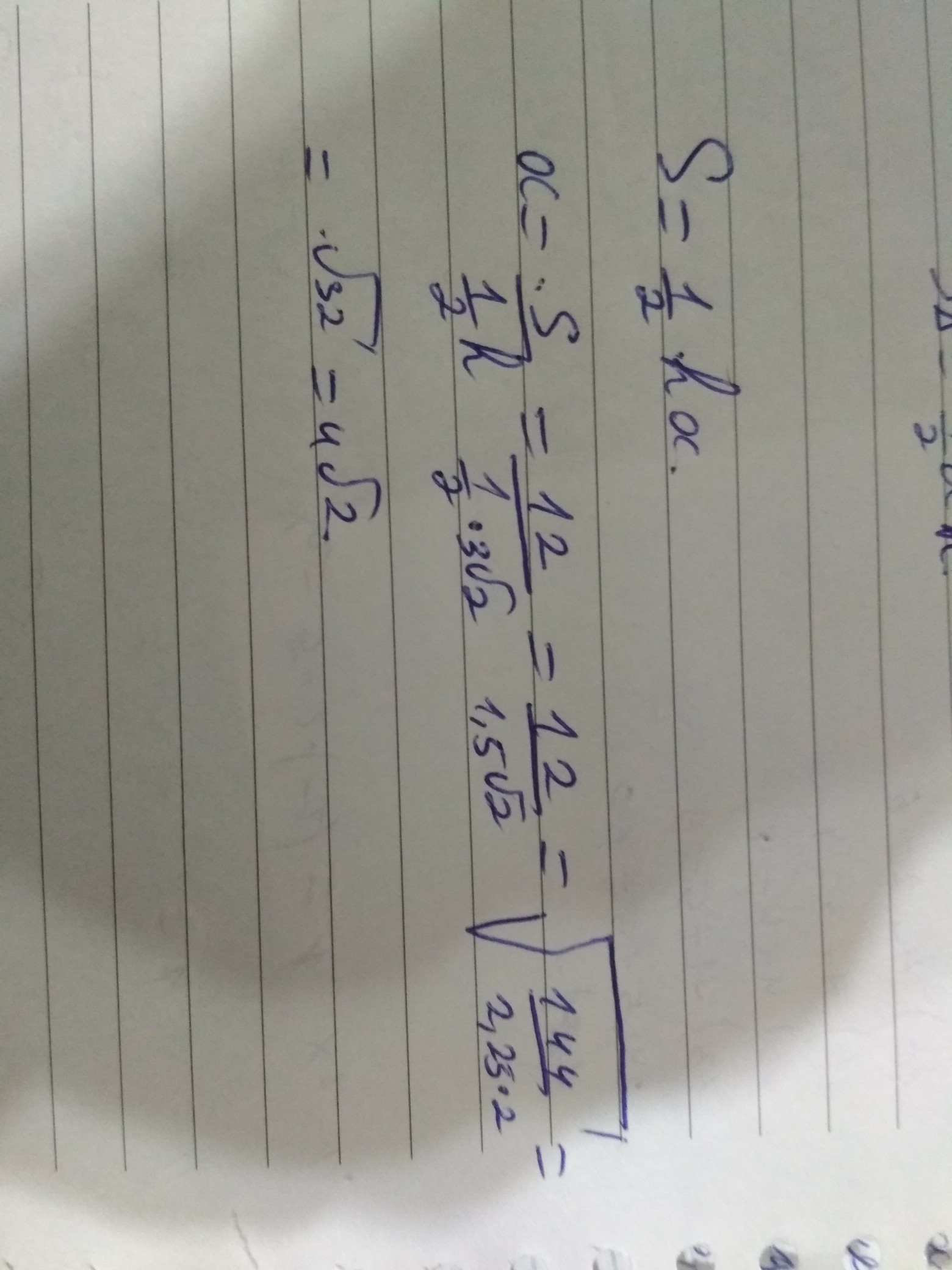 Пусть а - основание, h - высота, а S - площадь треугольника. Найдите a, если S = 12 см², h = 3√2 см.