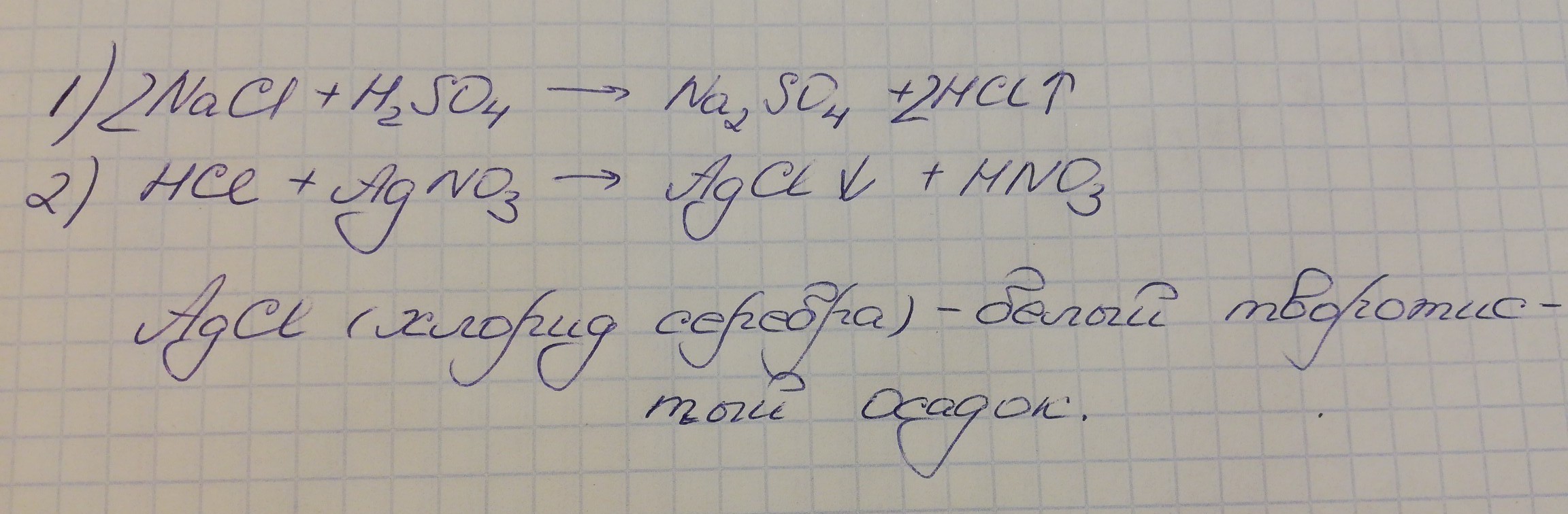 газ ,выделившийся при взаимодействии твердого хлорида натрия с концентрированной серной кислотой ,растворили в воде и добавили к нему нитрат серебра. При этом выпал белый творожистый осадок. Напишите уравнения описанных реакций