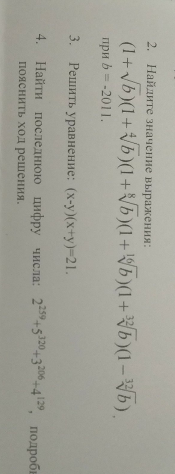 это по формуле (а-в)(а+в)=а^2-в^2 2)(1+V16 из в)(1-V16 из в)=1-V8 из в и так далее, в итоге получим 1-в=1-(-2011)=2012