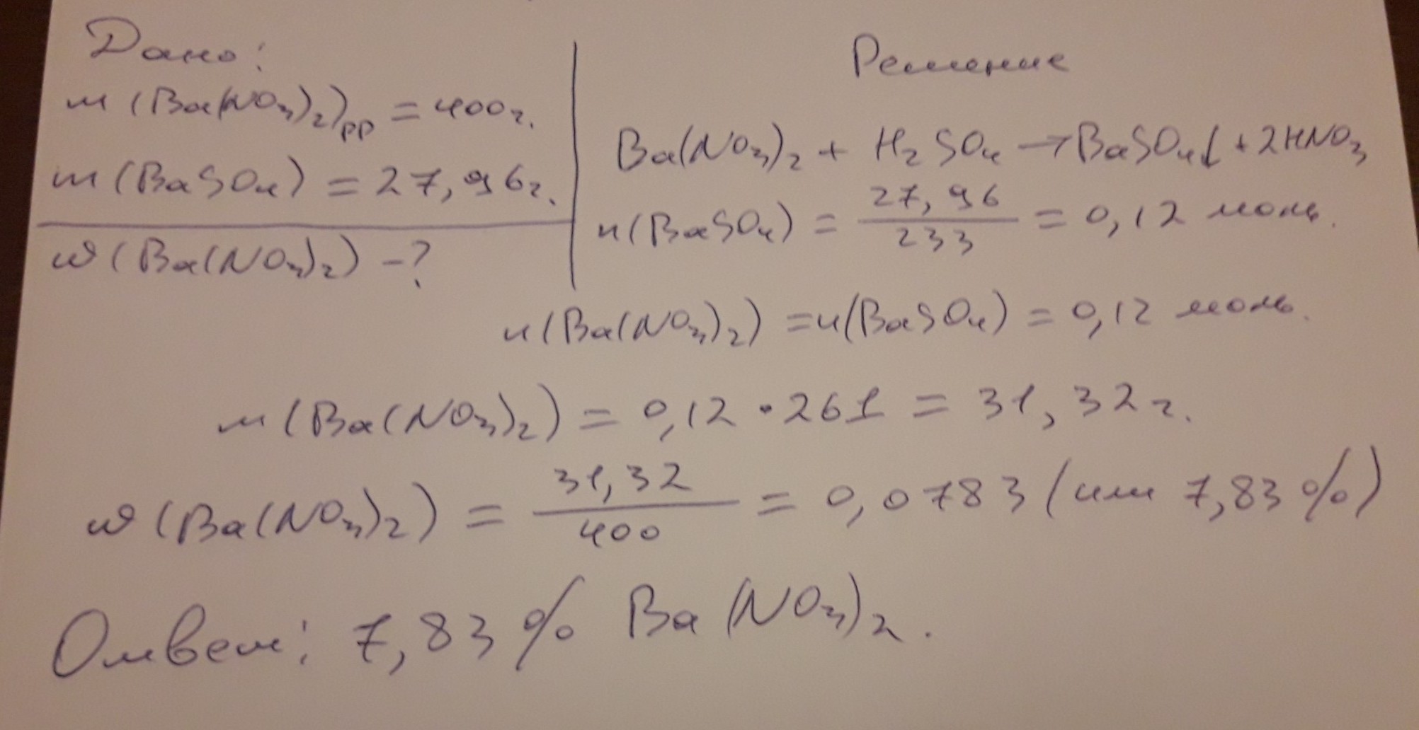 2. Какой объем углекислого газа может прореагировать с 500 г известковой воды, содержащей 0,925% гидроксида кальция. 3. Какова была массовая доля нитрата бария в 400 г раствора, если при взаимодействии с избытком серной кислоты выпало 27,96 г осадка?