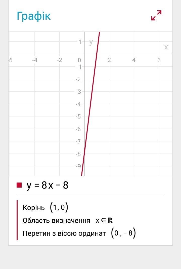 С осью OX: 0=8*х-8⇒8*х8⇒х=1, y=0.
