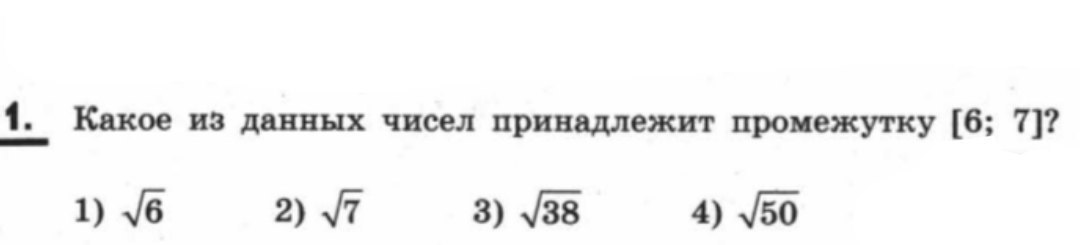 Ответ: промежутку [6; 7] принадлежит число под цифрой 3