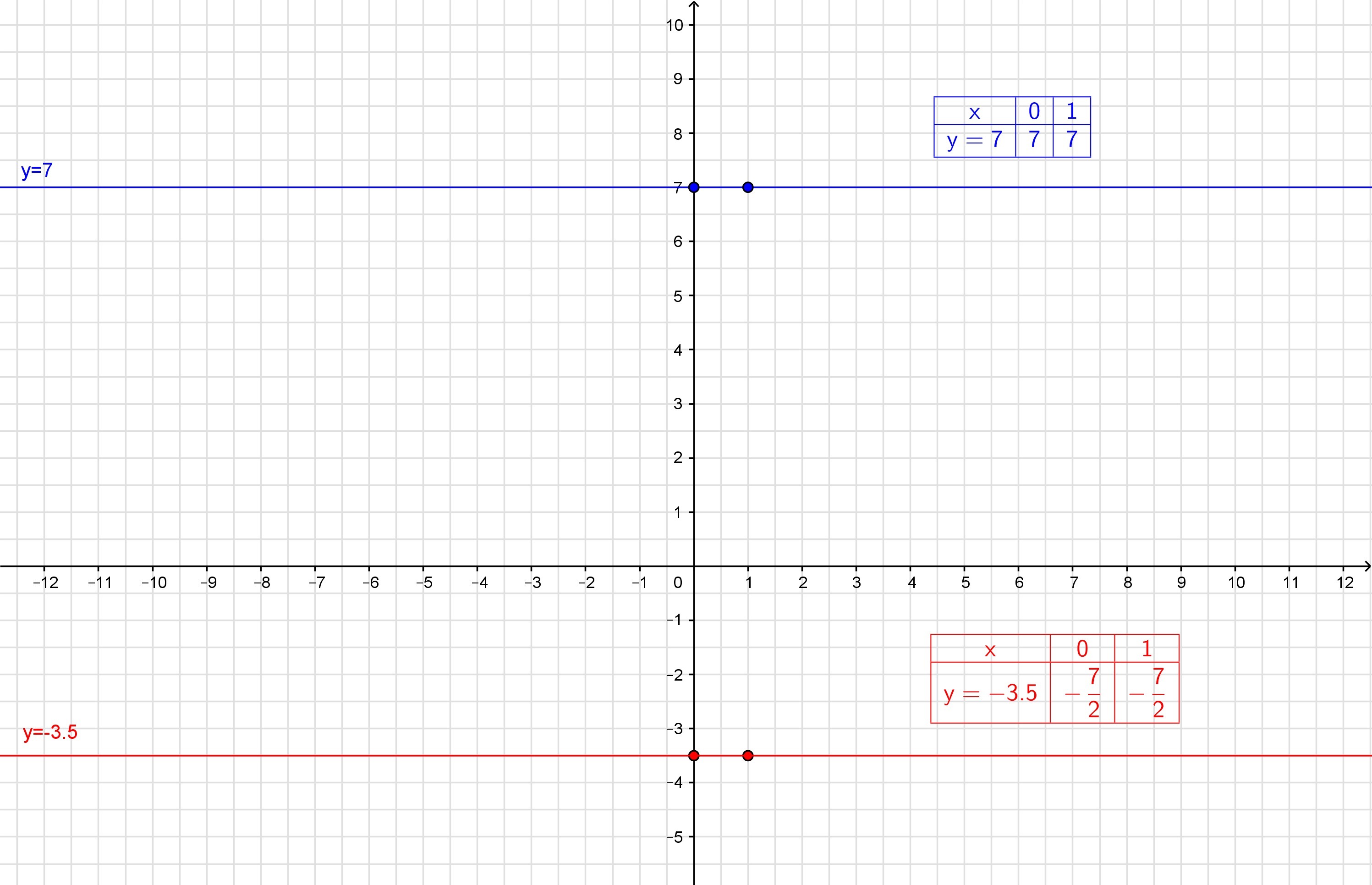 2) Прямая у= -3,5 проходит через точку (0; -3,5) параллельно оси ОХ (перпендикулярно оси ОУ).