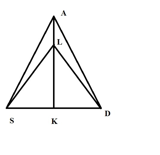 В равнобедренном треугольнике SAD с основанием SD на медиане AK отмечена точка L. Докажите, что треугольник SLA-равнобедренный. (по возможности с чертежом плиз)
