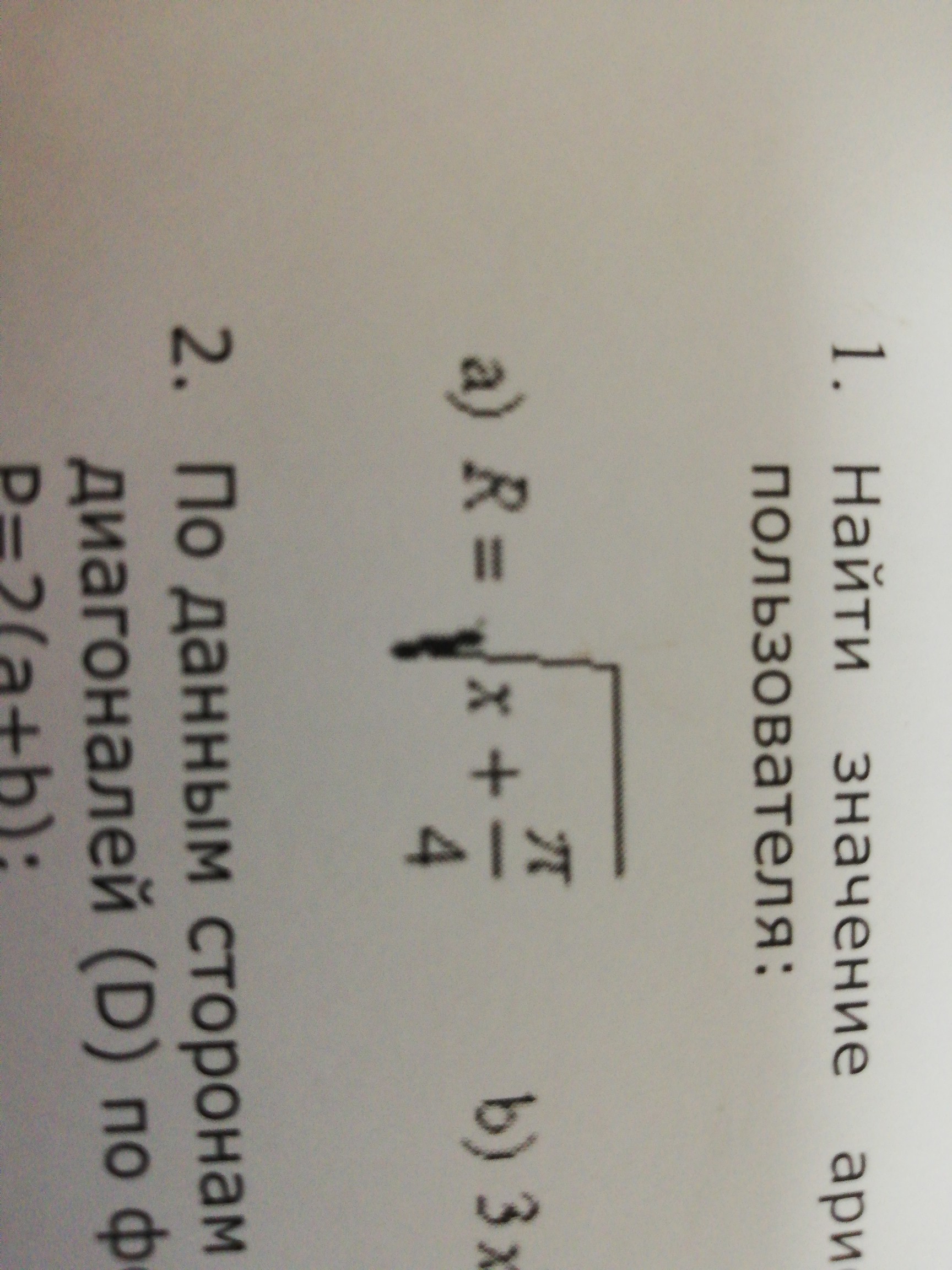 var R := Sqrt(ReadReal('x=')+Pi/4);