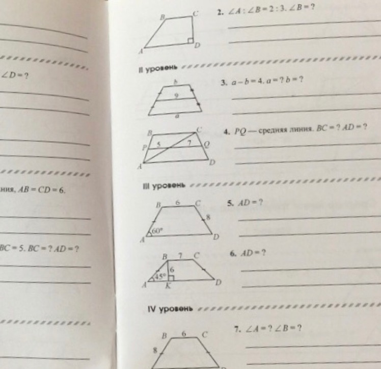 4. Диагональ трапеции делит ее среднюю линию на отрезки, равные половинам оснований.Значит: