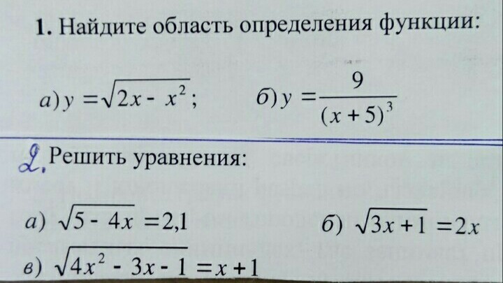 1. a) y=√(2x - x^2) Чтобы функция была определена, выражения под корнем должно быть больше 0