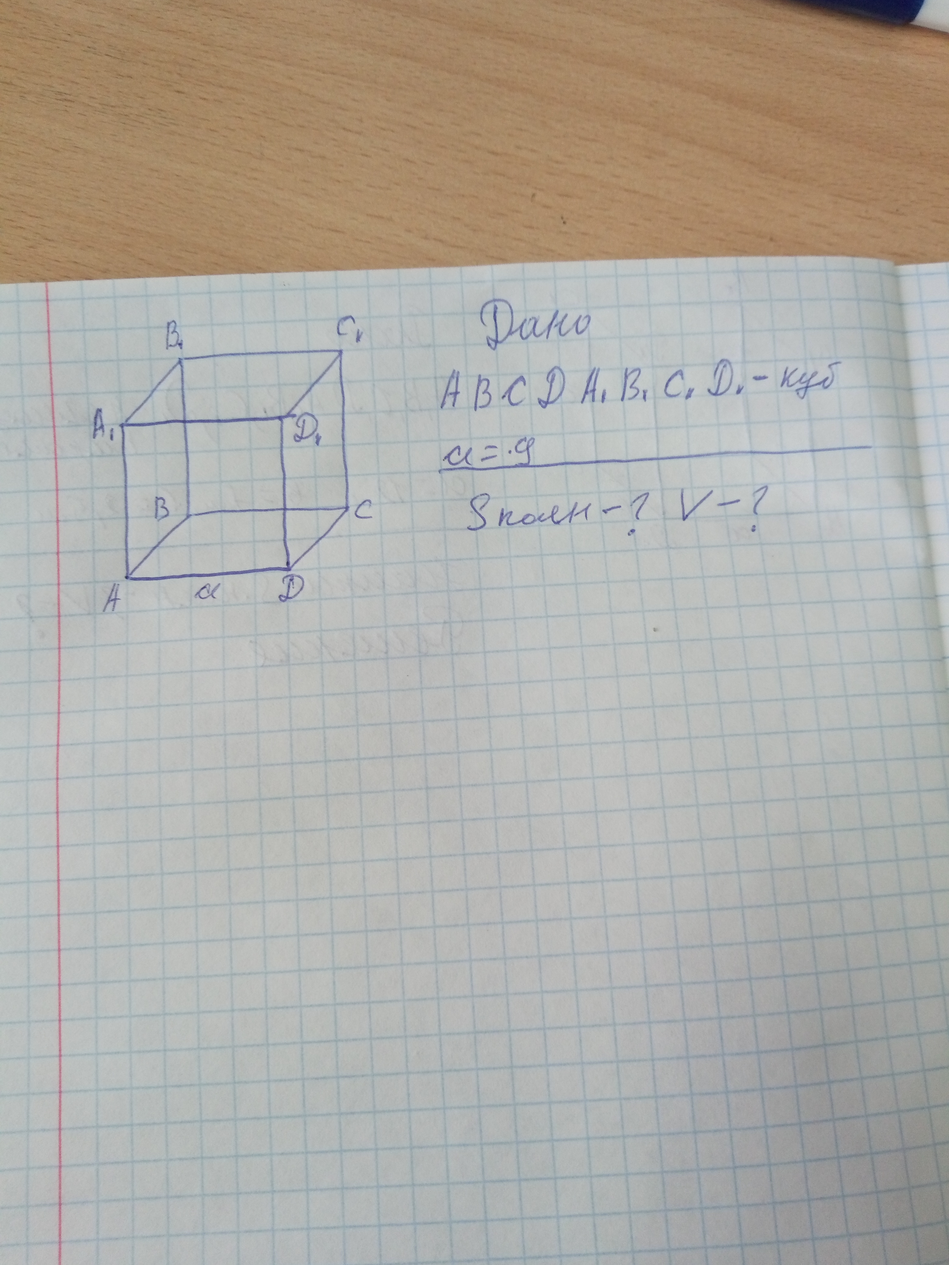 Полная поверхность куба состоит из 6 граней, каждая из которых является квадратом со стороной a.