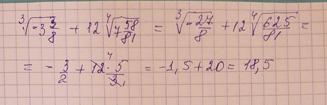 ₃√-3 3/8 + 12₄√7 58/81 Найдите значение выражения