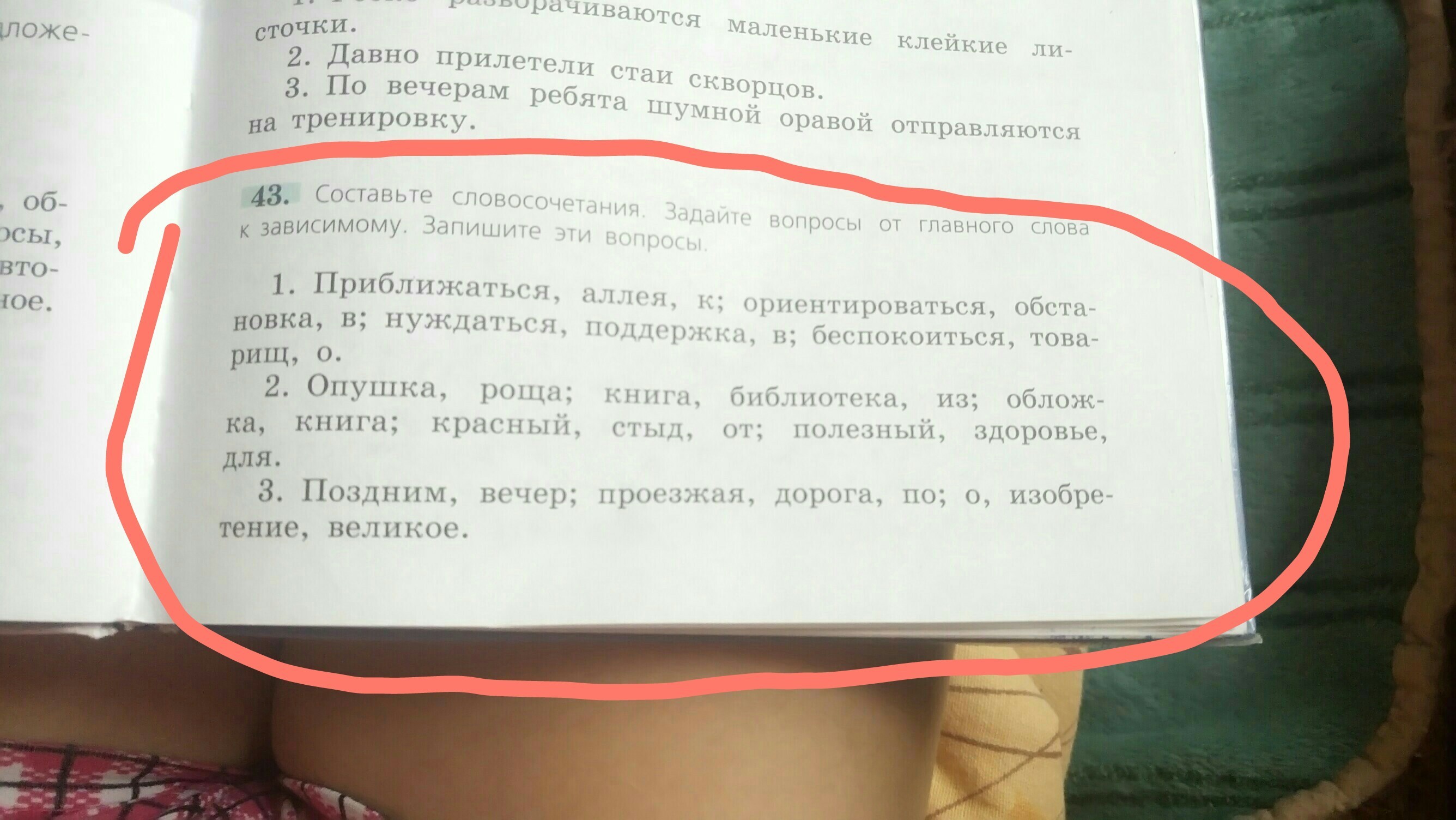 1. Приближаться (к чему?) к алее; ориентироваться (где?) в обстановке; нуждаться (в чём?) в поддержке; беспокоиться (о ком?) о товарище; полезный (для чего?) для здоровья.