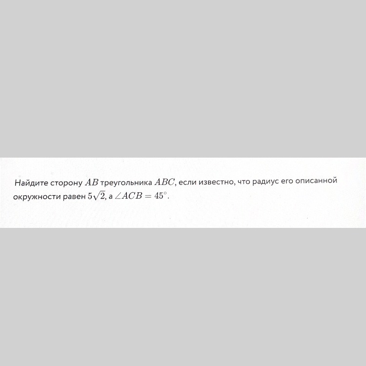 AB = 2R * sin∠ACB = 2* 5√2 * √2/2 = 10 см
