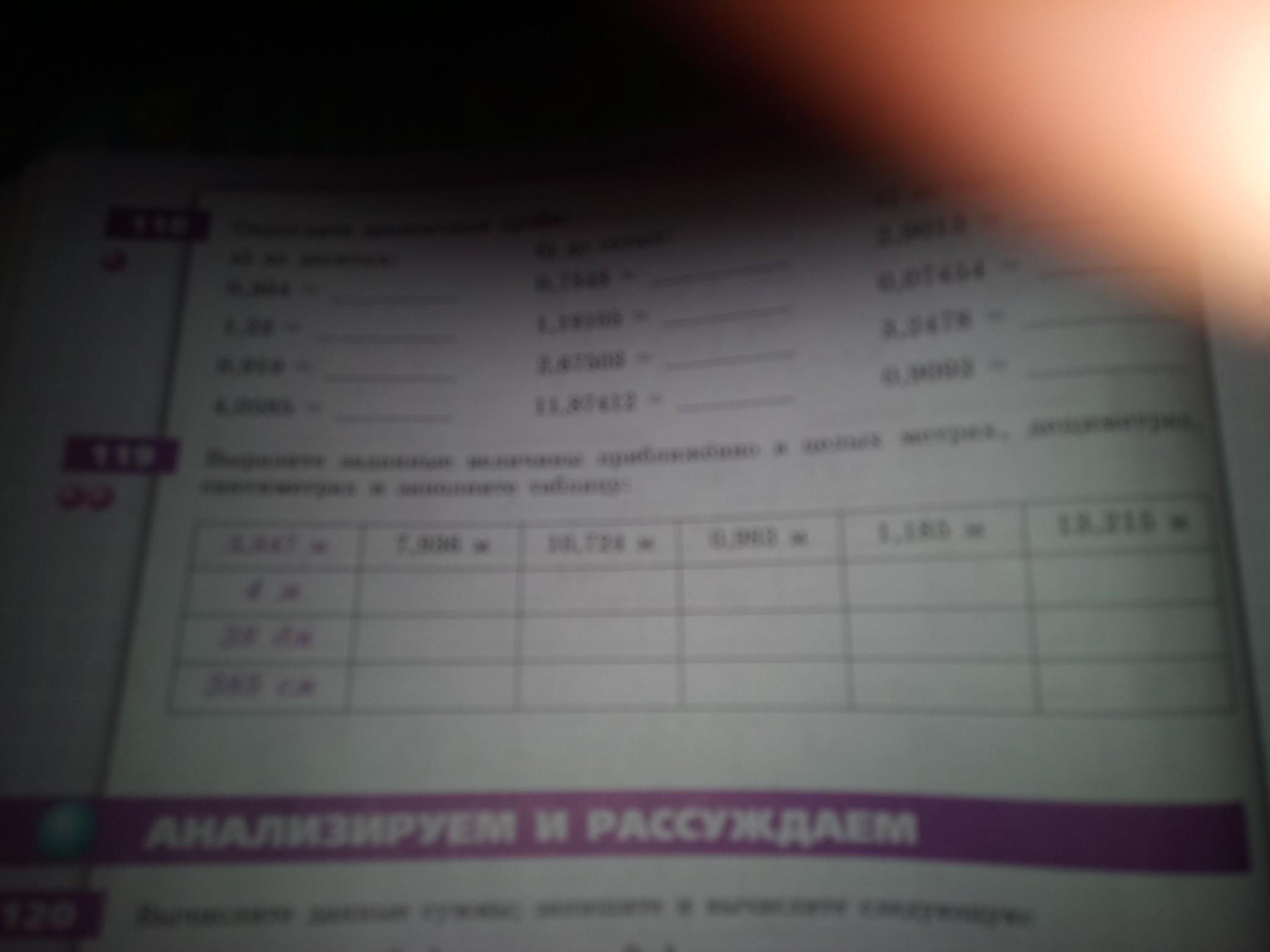 выразите заданные величины приближенно в целых метрах, дециметрах, сантиметрах и заполните таблицу :