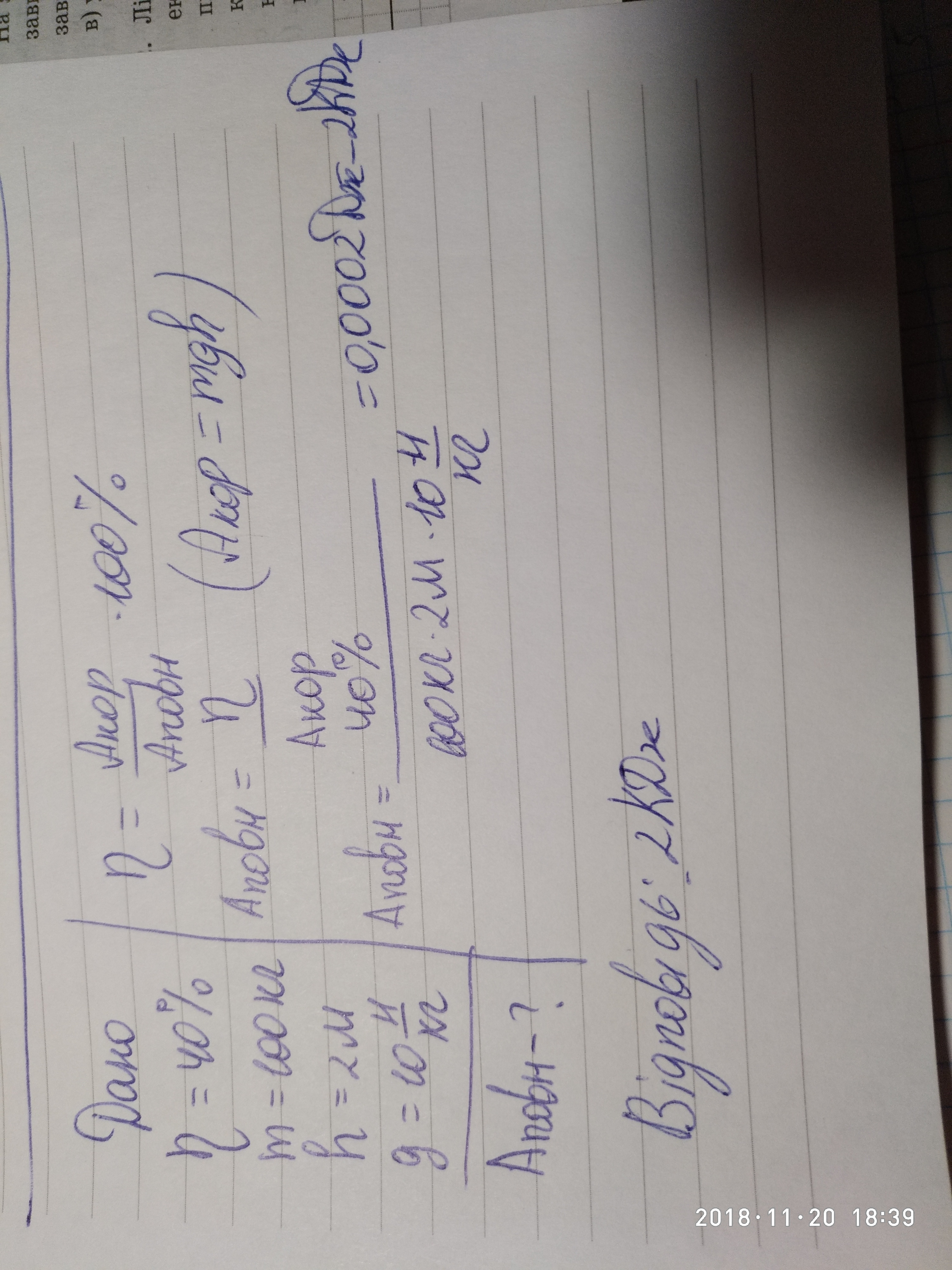 Даю 30 баллов! ПОМОГИТЕ! С помощью простого механизма, КПД которого равен 40%, равномерно поднимают груз массой 100 кг на высоту 2 м. Чему равна совершённая при этом механическая работа? Считать, что g = 10 Н/кг.