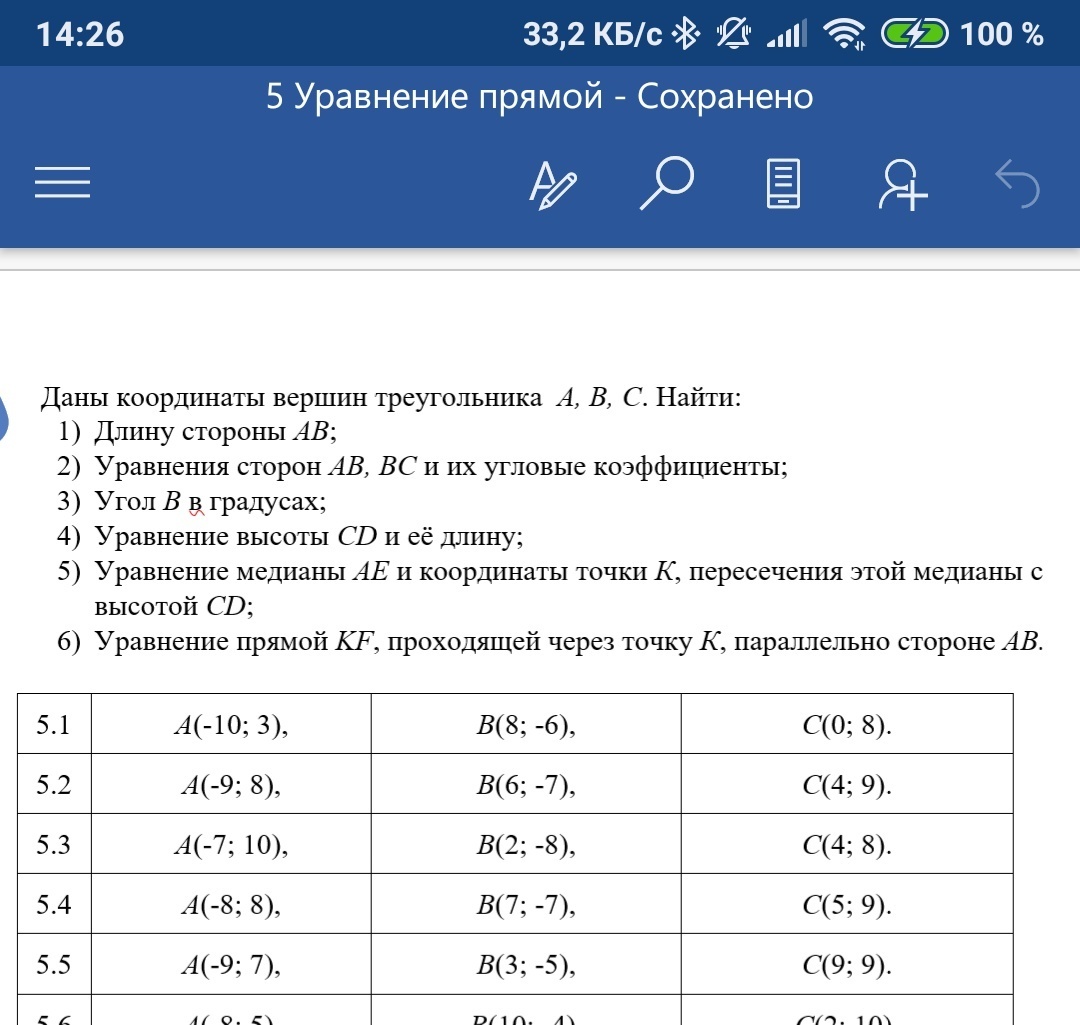 значит медиана проходит через точки -9;7 и 6; 2