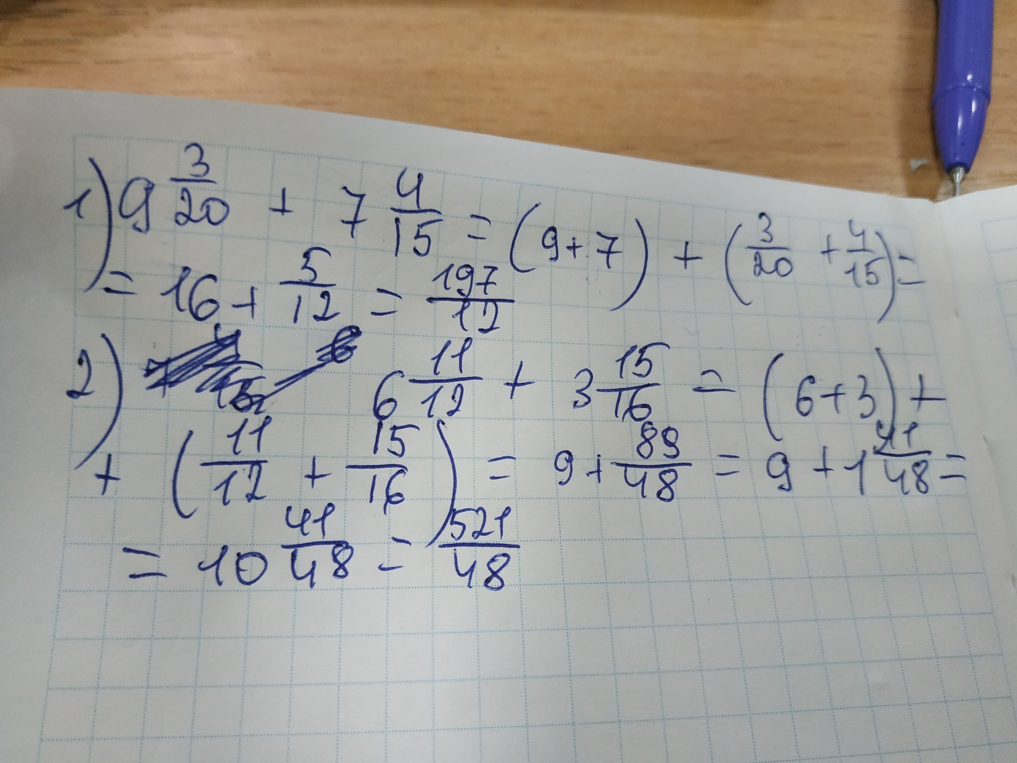 Переводим в неправильную дробь смешанные дроби и находим НОЗ: