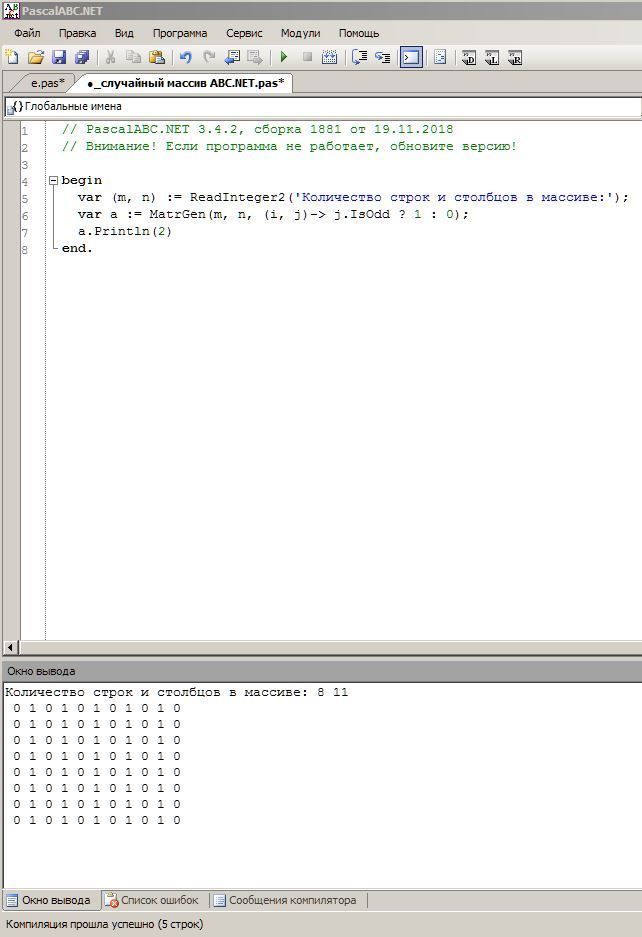 var (m, n) := ReadInteger2('Количество строк и столбцов в массиве:');