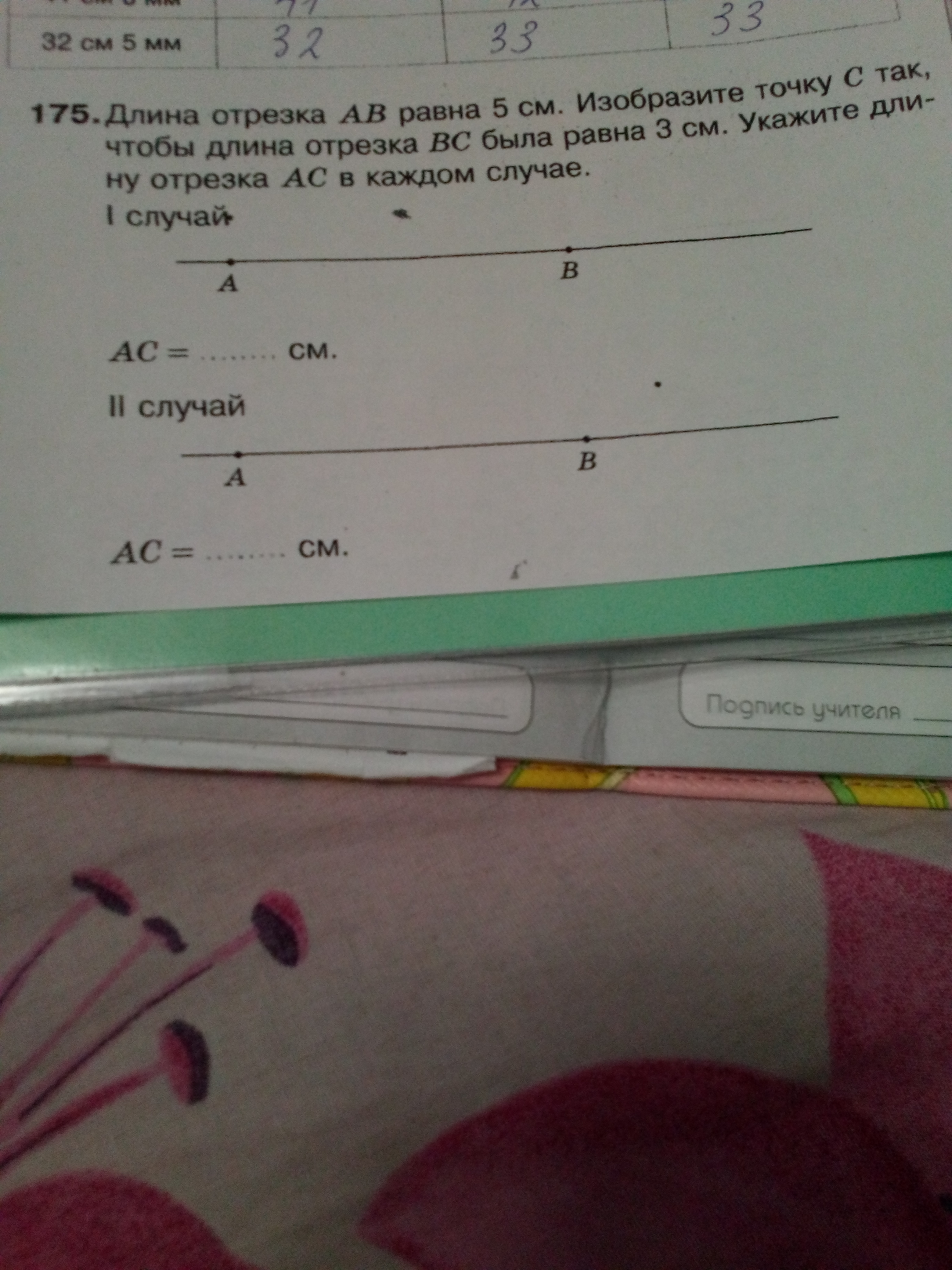 Длина отрезка АВ равна 5 см. Изобразите точку С так, чтобы длина отрезка ВС была равна 3 см. Укажите длину отрезка АС в каждом случае.