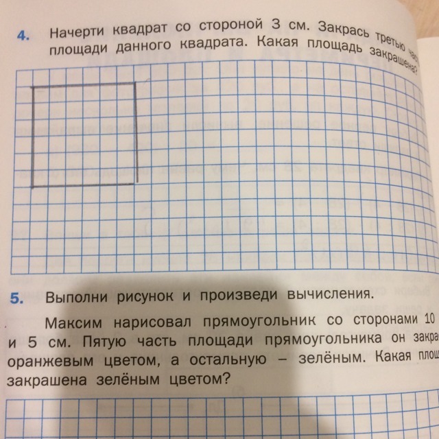 Начерти квадрат со стороной 3 см закрасьте третью часть площади данного квадрата. Какая часть закрашена?