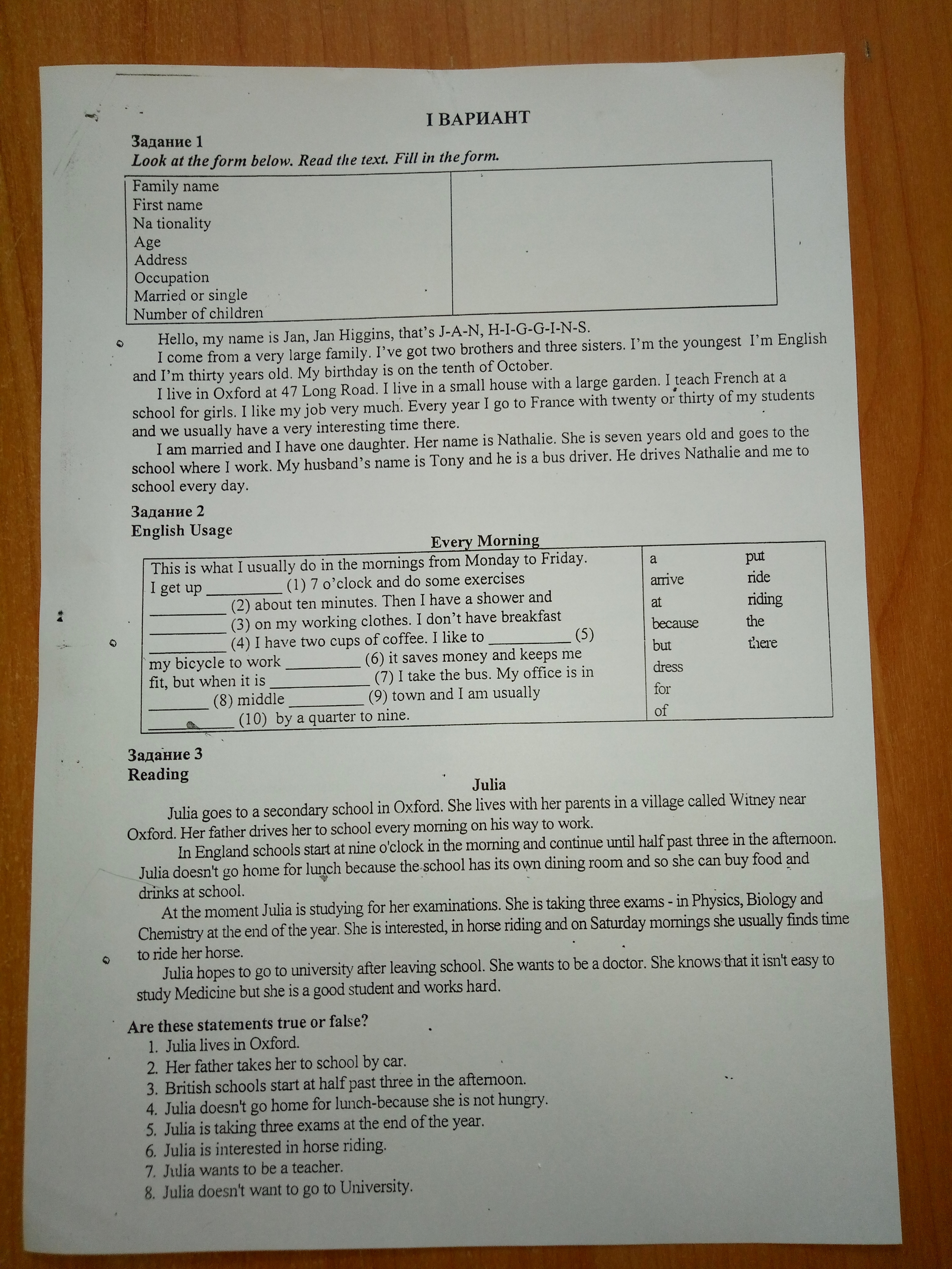 1 at 2 for 3 put 4 there 5 ride 6 Riding 7 raining (вариант ответа отсутствует, но подходит по смыслу) 8 the 9 off 10 arriving ( дан в не подходящем времени arrive)
