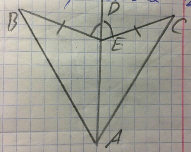 они равны тк. АЕ- общая, ВЕ =ЕС по условию,угол ВЕD= DEC по условию, значит треугольники равны по 2 сторонам и углу между ними
