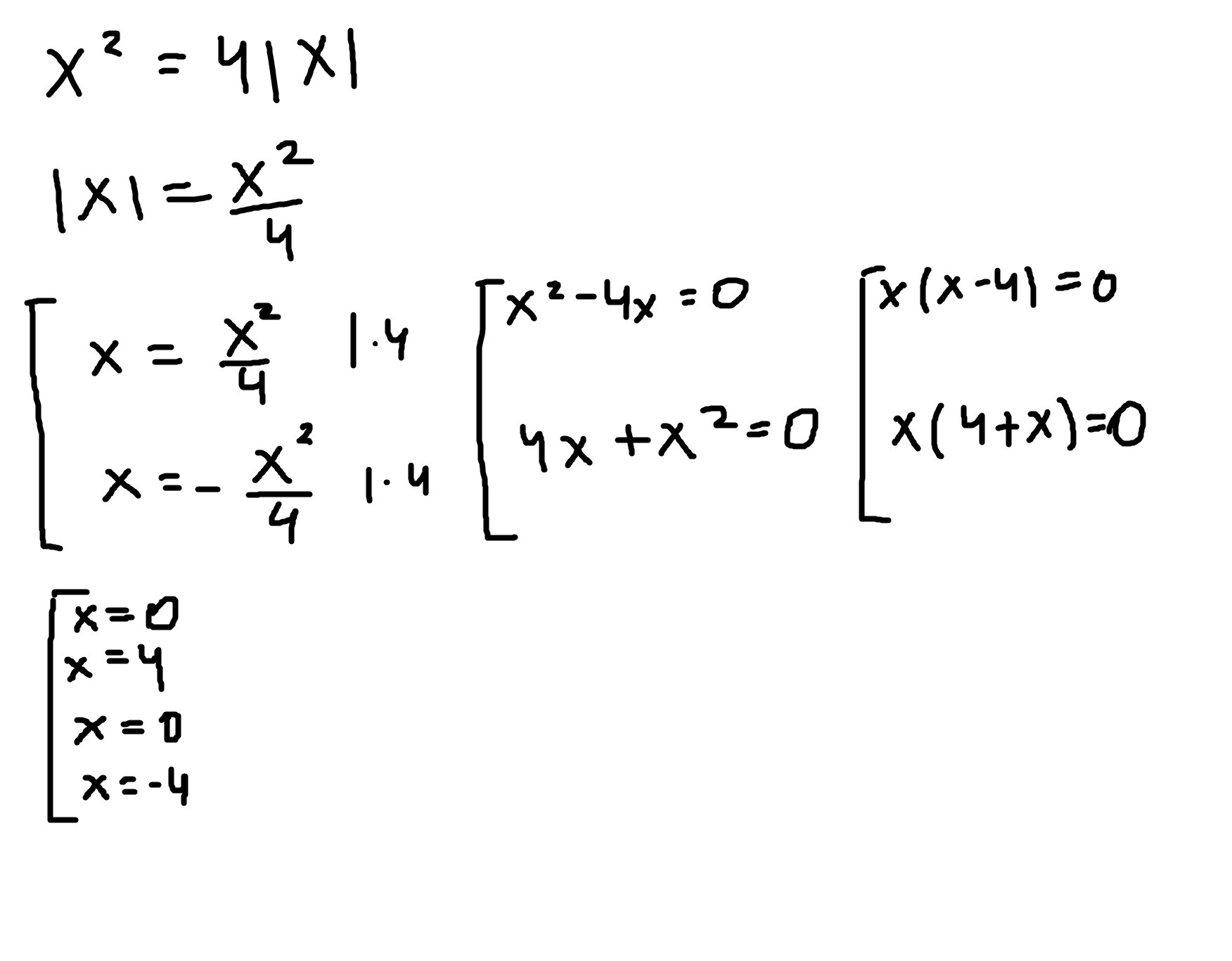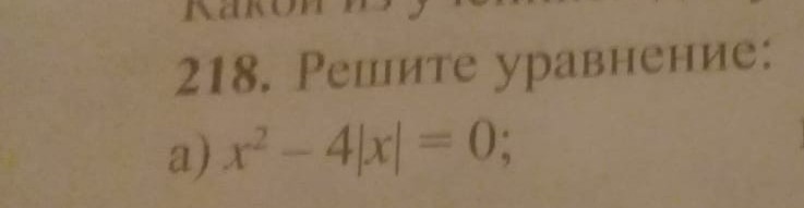 Получаем ответ x = 0 или x = 4. Но также решением может быть и отрицательное число, так как x с модулем x= -4